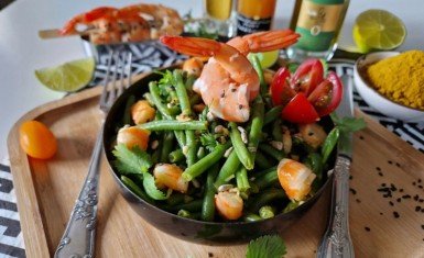 Haricots verts en salade avec ses crevettes roses