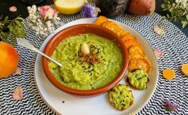 Purée de Petits Pois et Ricotta sur Biscuits Salés